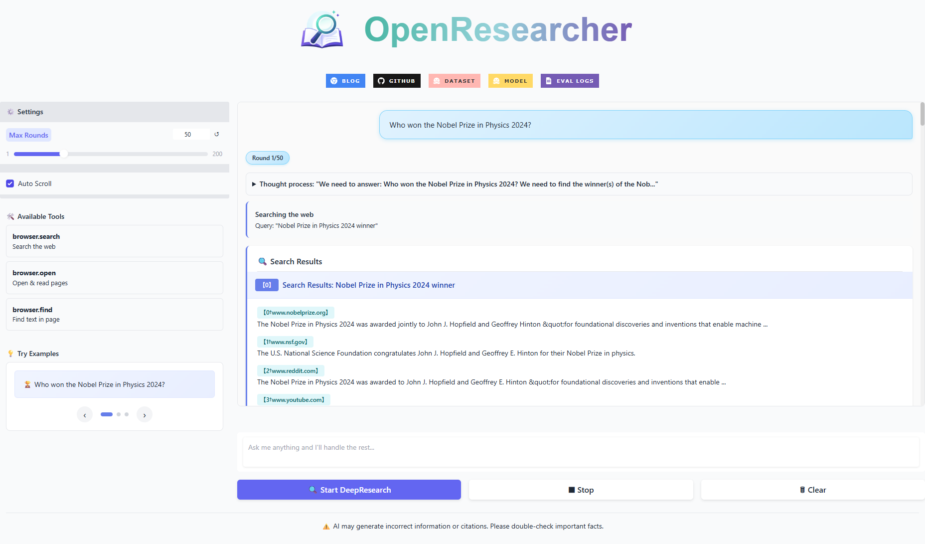 - 🚀 在线Demo: https://huggingface.co/spaces/OpenResearcher/OpenResearcher