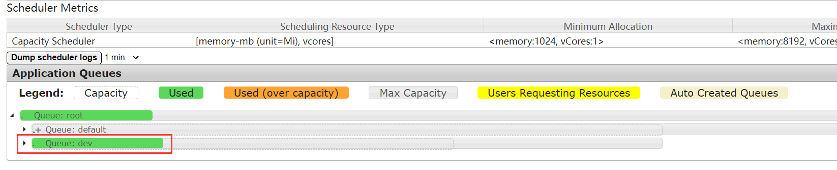 需求描述:在Yarn中新增加一个dev队列,用于开发测试的任务计算。