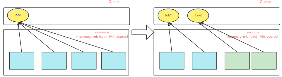 同一个队列上的所有任务共享集群资源,不预先抢占资源。当集群中只有一个任务时,就会占用整个队列的资源。