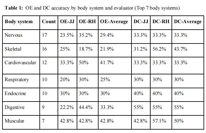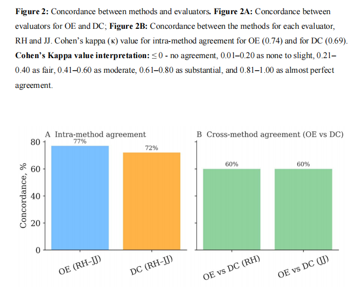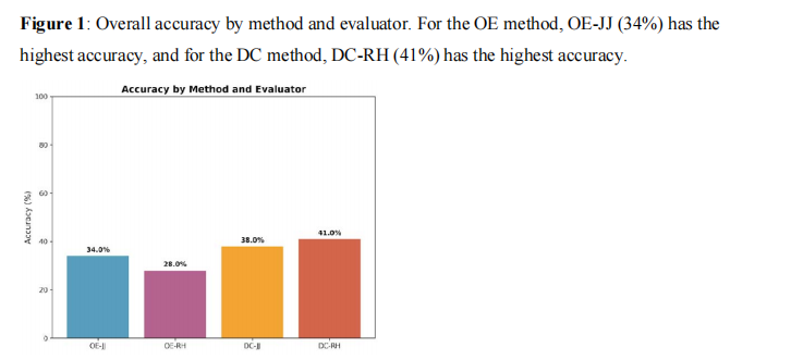 :DC平均准确率43.7%,但评估者间差异较大(31.2% vs 56.2%)