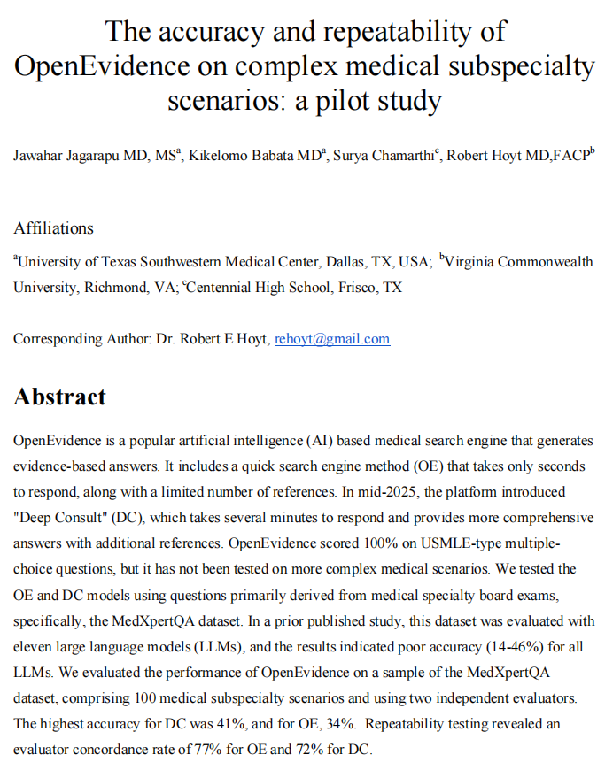 评估OpenEvidence准确性和完整性的研究一直有限: