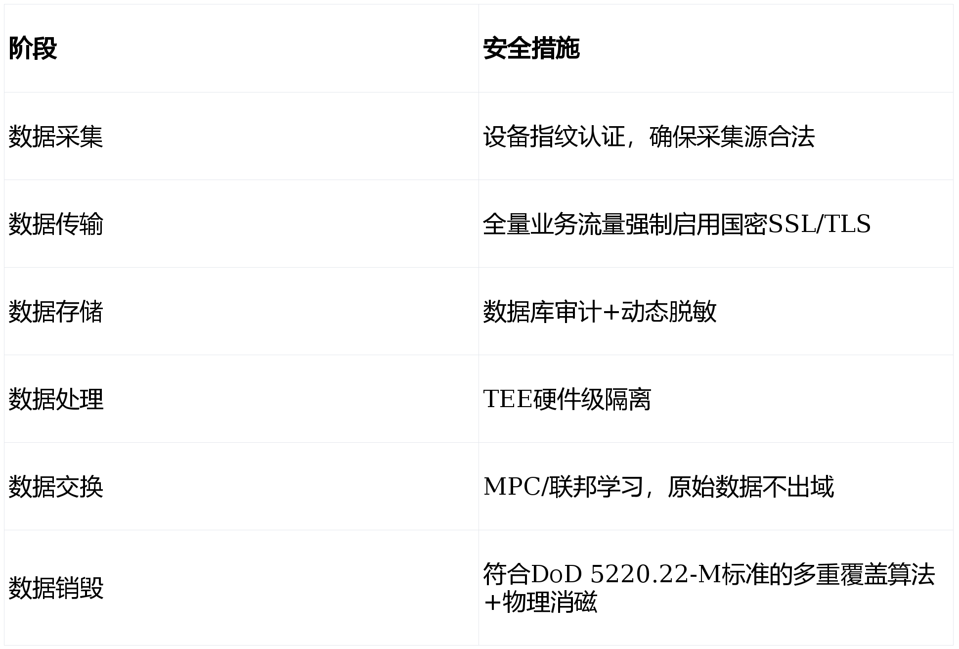 - 依据GB/T 35273-2020标准,对18类标识符进行K-Anonymity或差分隐私处理