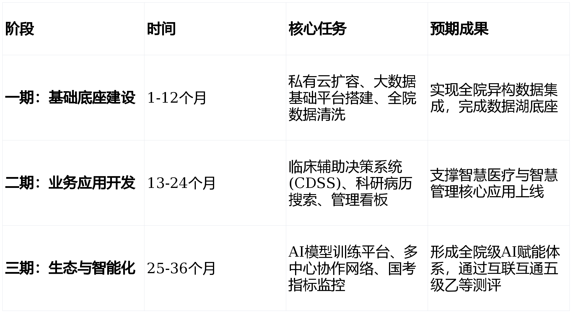 在"十五五"期间,随着大模型技术的持续演进和隐私计算技术的成熟普及,医疗智能化将进入"数据驱动"的新纪元。本项目的实施不仅为医院自身的高质量发展注入新动能,更为我国医疗卫生事业的数字化转型提供了可复制、可推广的样板,助力实现"健康中国2030"的宏伟目标。
