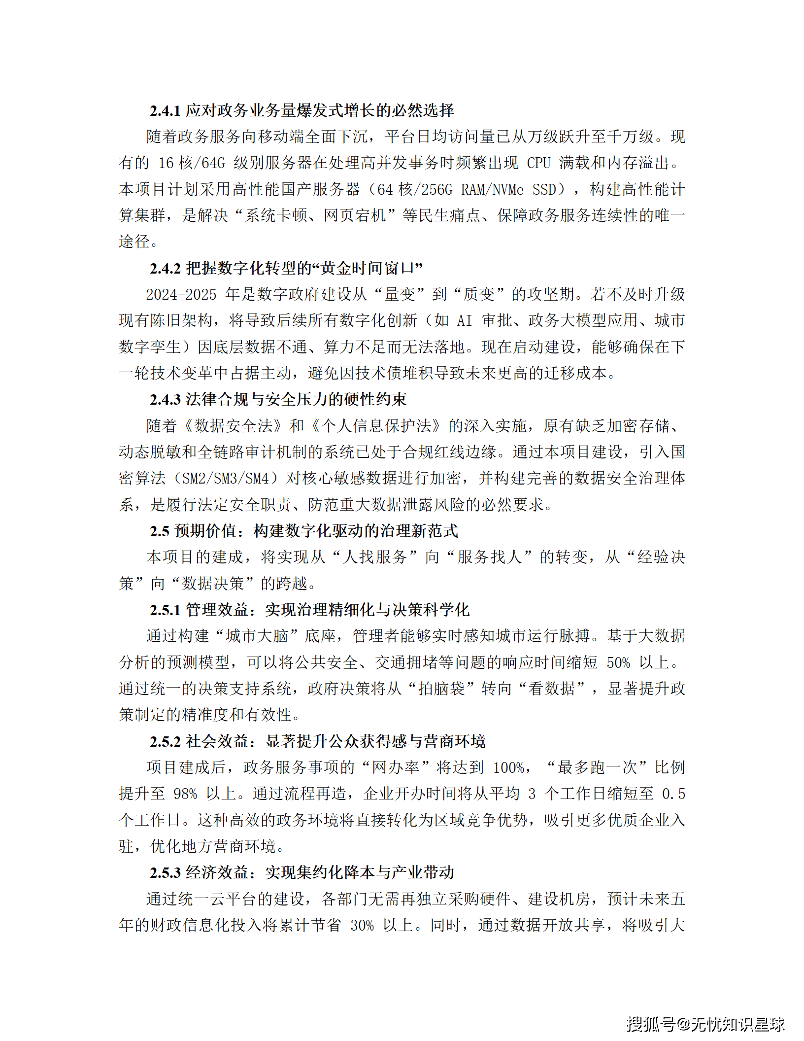 - 通过统一基础设施建设,避免重复投资,节约后续信息化建设成本20%以上