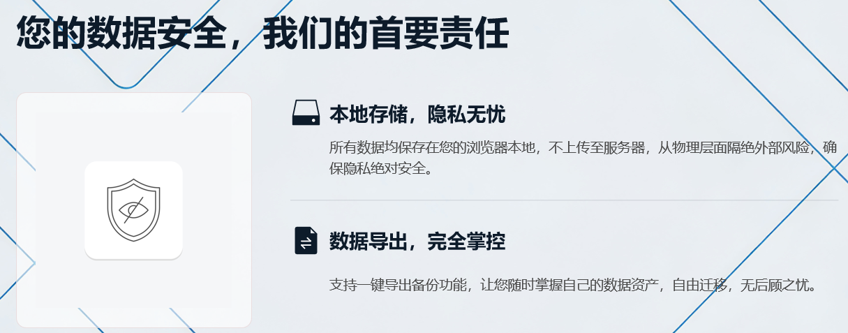 另外,对于很多人关心的数据安全问题,时光本采用了本地存储的方式,所有的数据都保存在你的浏览器本地,不会上传到服务器,你还可以随时导出数据进行备份,不用担心自己的工作记录和隐私被泄露。如果需要在不同设备之间同步数据,只需要导出数据然后在另一个设备上导入就可以了,很方便。