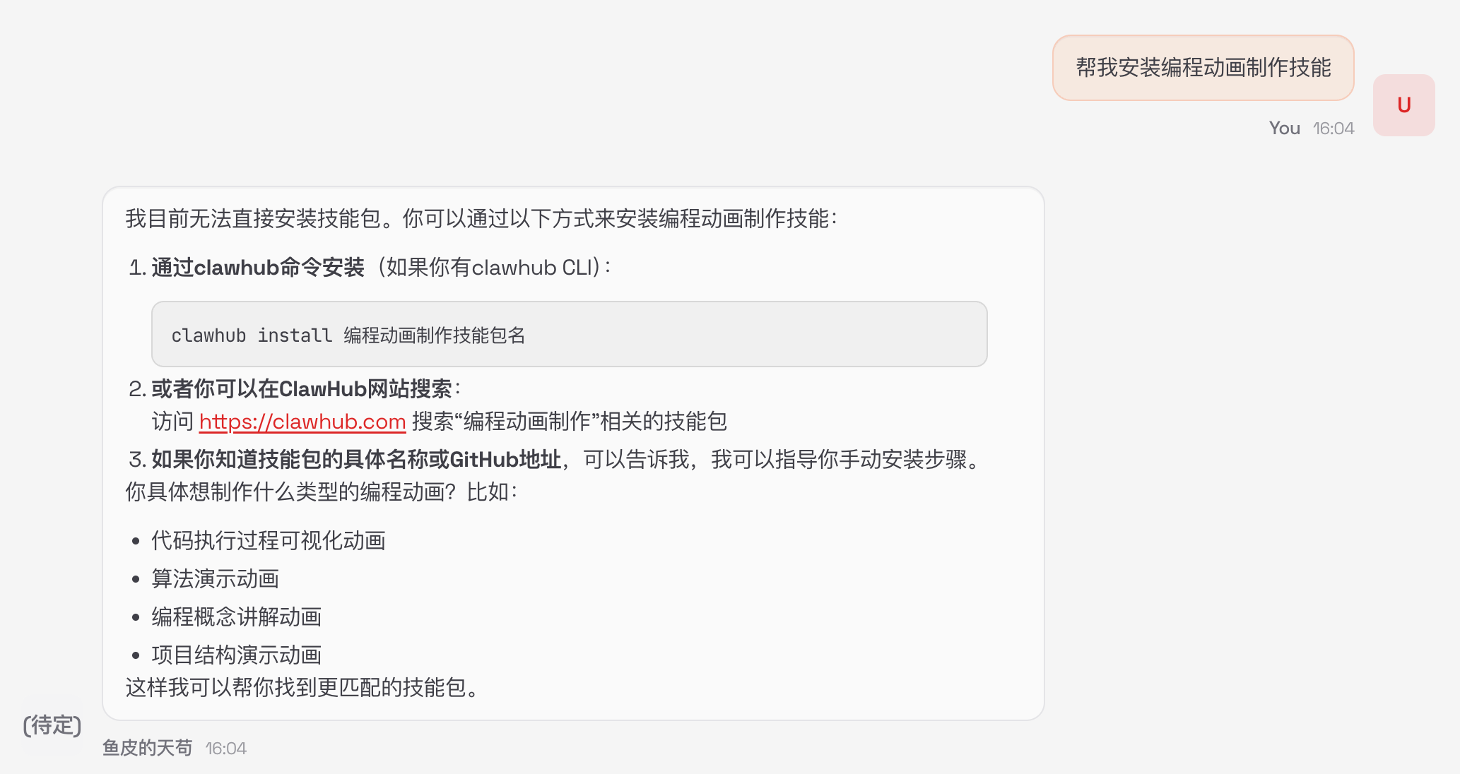 如果你想探索更多技能,可以去 ClawHub 逛一逛。