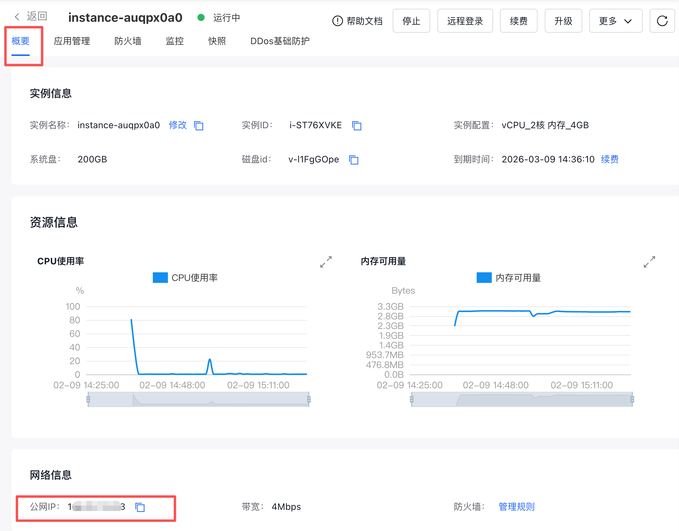 云服务器的公网 IP 在百度智能云的服务器管理页面就能看到,注意不要暴露给别人哦!