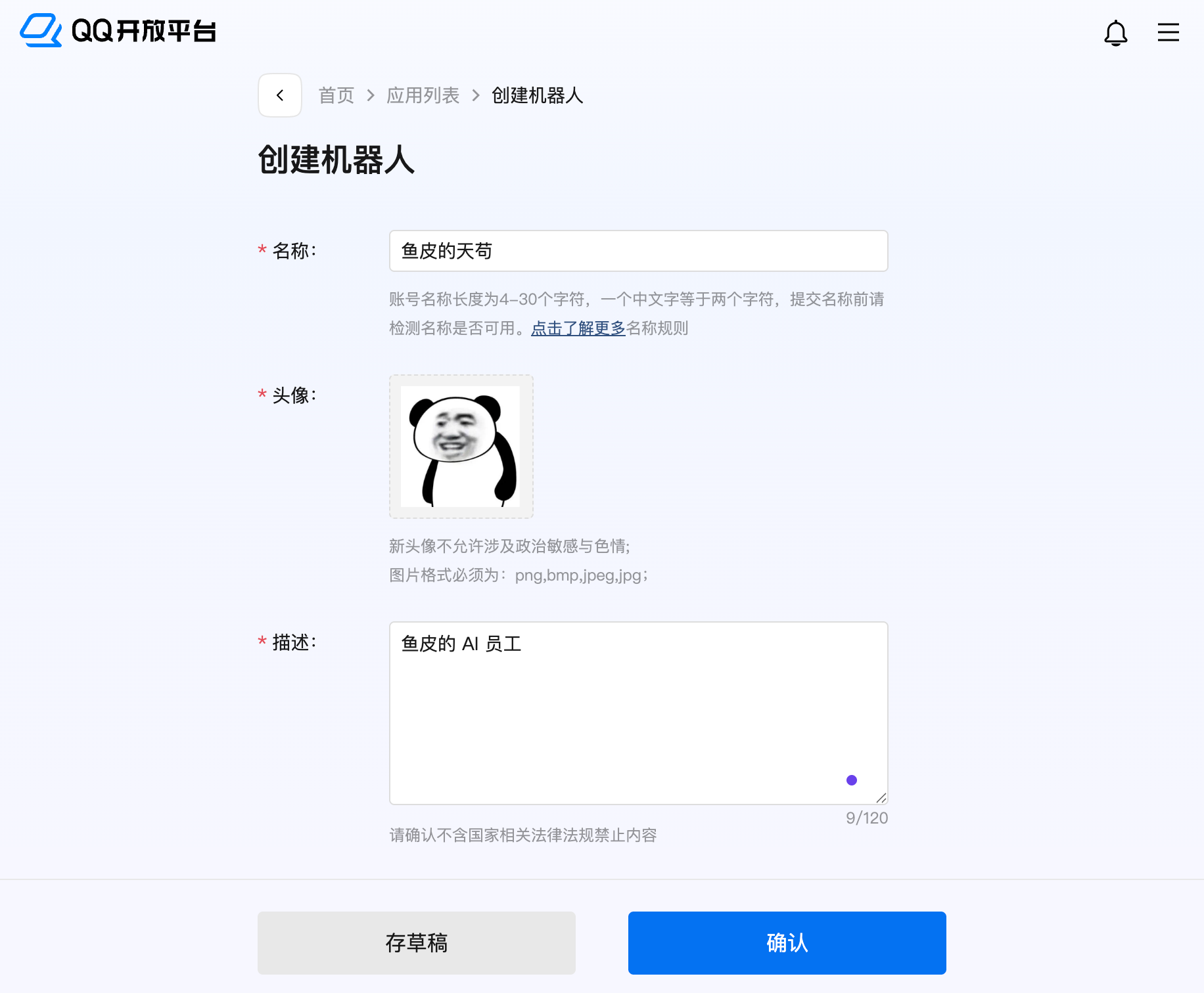 给你的机器人设置一个爱称和可爱的头像吧,便于之后在 QQ 中找到他: