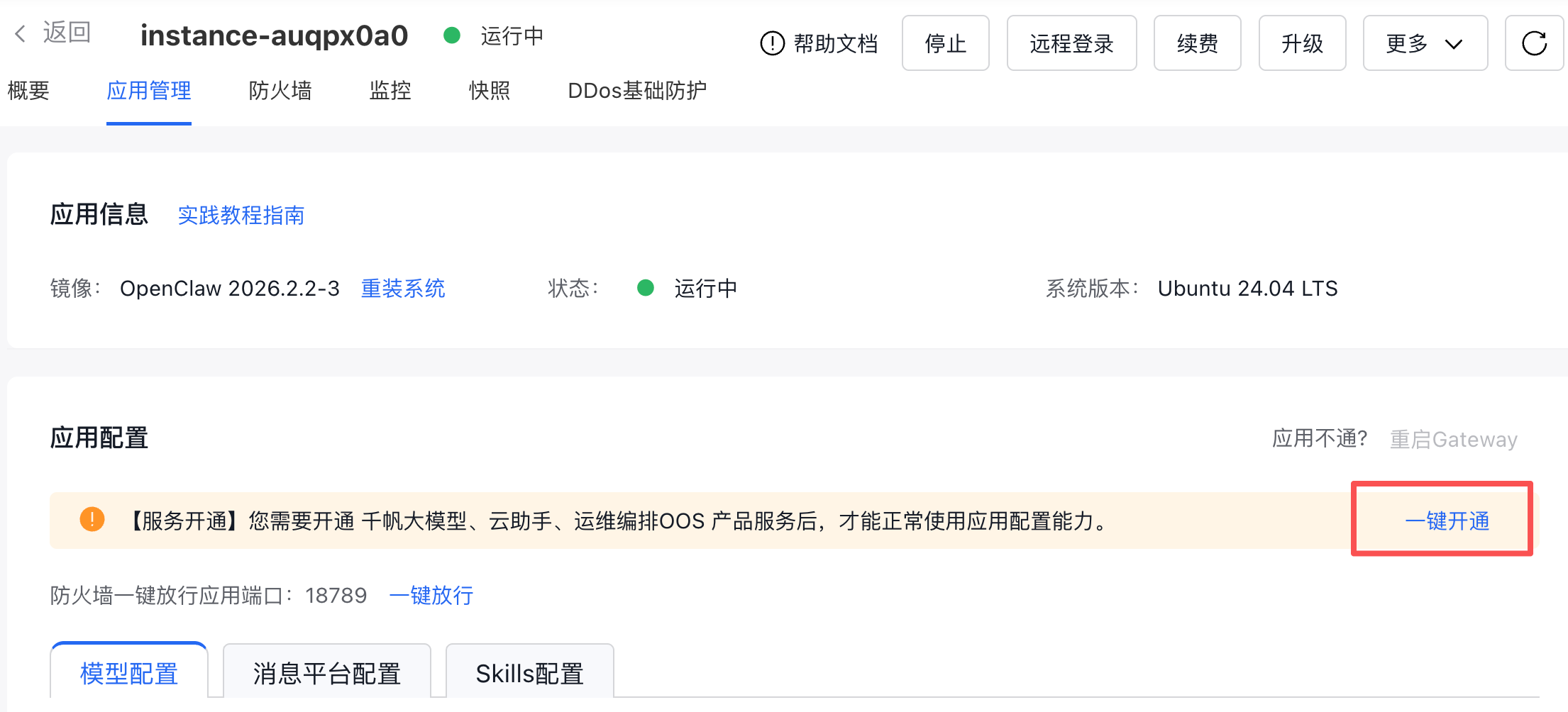 页面会提示你需要开通千帆大模型、云助手等几个服务。不用一个个去找,直接点 一键开通,同意协议就搞定了。
