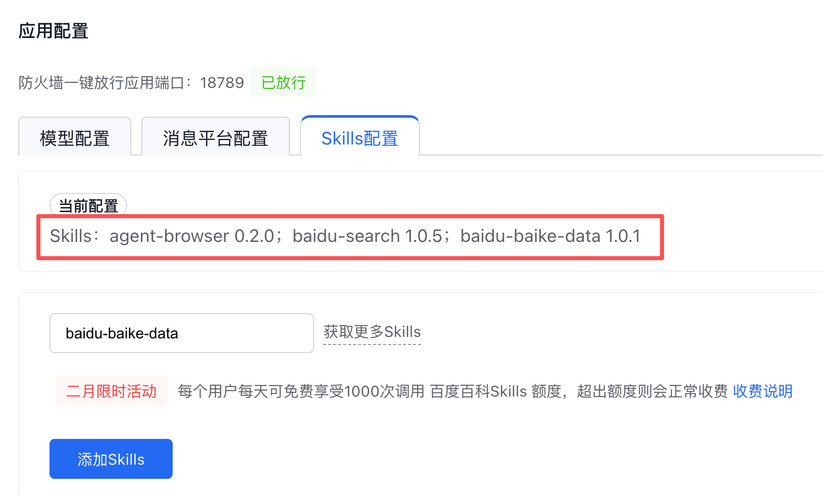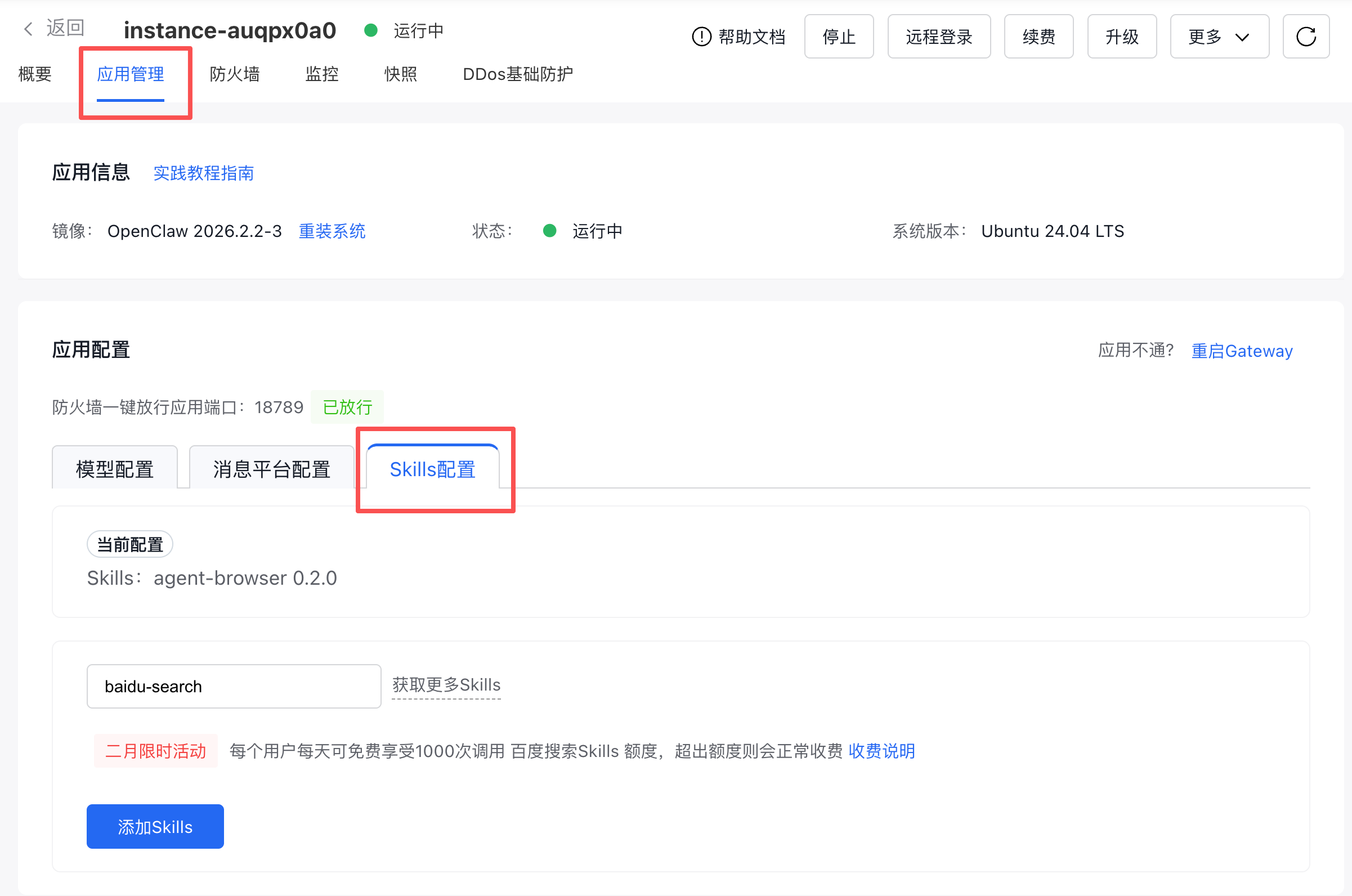 如果你使用百度智能云安装 OpenClaw,安装技能就非常简单了。