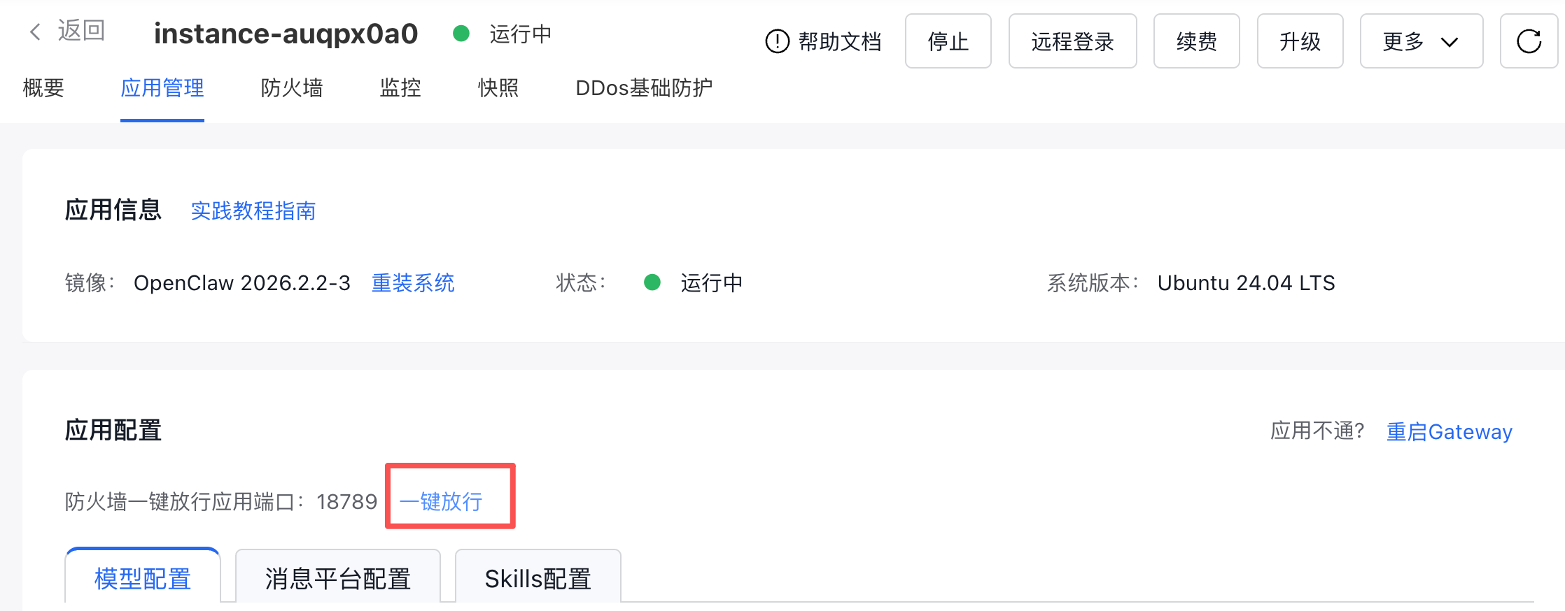 如果你想要访问已经部署的 OpenClaw 网页控制台,需要放通服务器防火墙的 18789 端口。