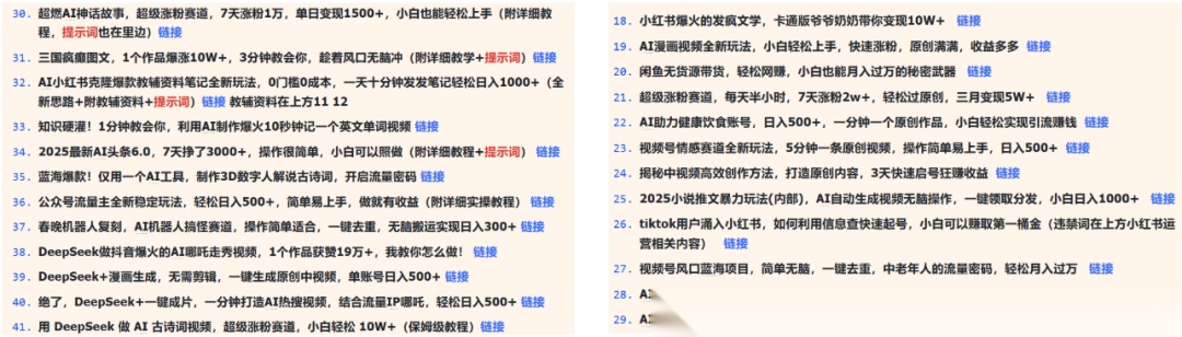 我能实现逆袭,还有一个核心原因,就是“专业聚焦”——从决定深耕AI赛道开始,我就一直专注于AI、大模型相关领域,没有盲目跨界;转型个人IP后,我也一直聚焦于小白、程序员的AI学习、副业变现,输出精准干货,积累精准粉丝。