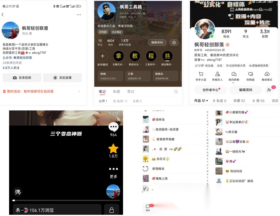 我先后布局了抖音、快手、小红书、视频号等多个公域平台,聚焦AI、大模型赛道,针对小白、程序员的需求,输出干货内容——比如小白入门AI的学习路线、大模型实操教程、AI竞赛备战技巧、副业变现方法等。