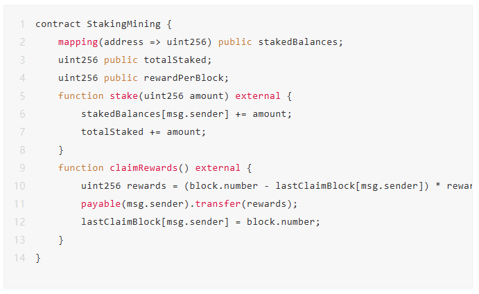 质押挖矿DAPP的核心是智能合约,其开发需遵循“安全三角”原则: