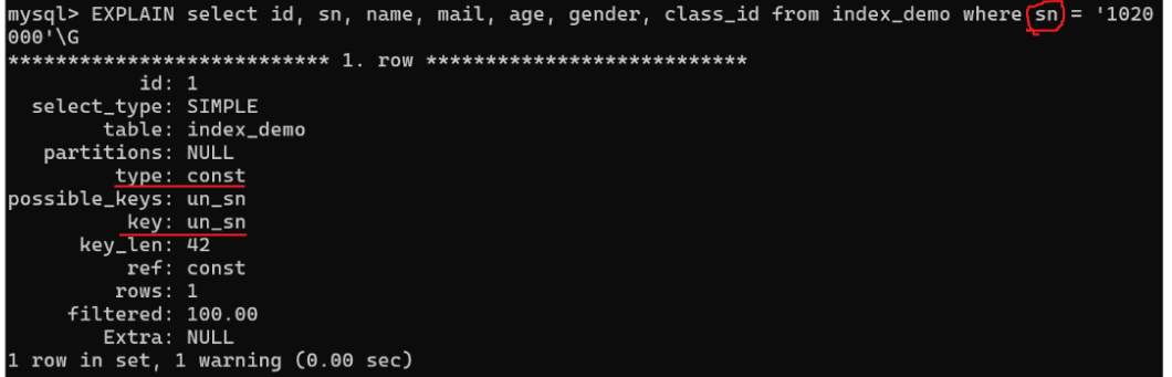 - 所以 filtered = 100%(全部符合)