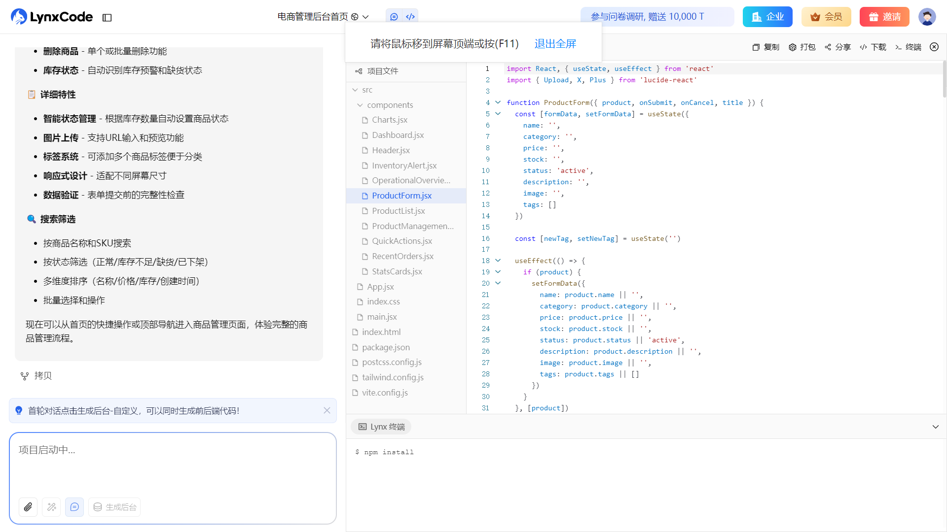 如果你之前用过它的老版本,也可以留意一下——lynxcode 就是原来的 lynx AI,只是现在能力已经从单纯生成页面,扩展到了更完整的应用结构生成。