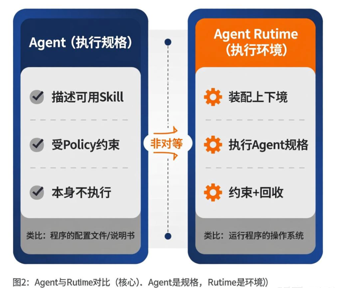 一句话快速记忆:Agent 是“程序描述”,Runtime 是“运行这个程序的操作系统”。