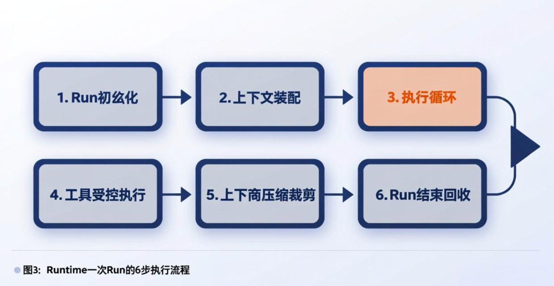 这是大家最熟悉的环节,但容易陷入认知误区。在 Runtime 中,这个循环有明确硬约束: