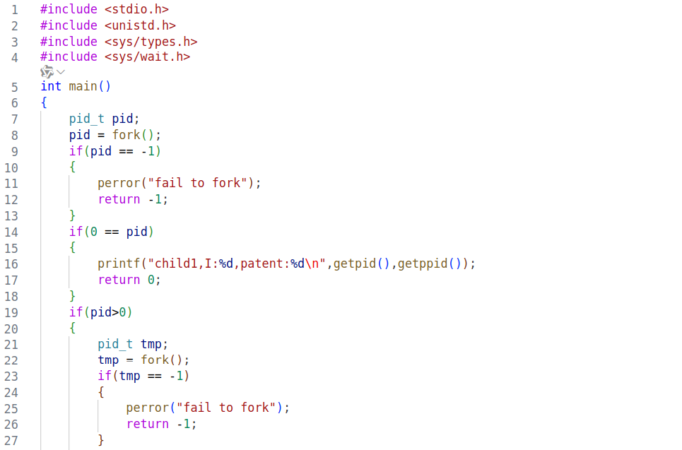 pid_t getpid(void); // 获取当前进程PID pid_t getppid(void); // 获取父进程PID