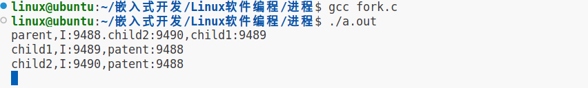 1. 为一个进程创建2个子进程,子进程中打印自己的PID和父进程的PID,父进程中打印自己的PID和2个子进程的PID