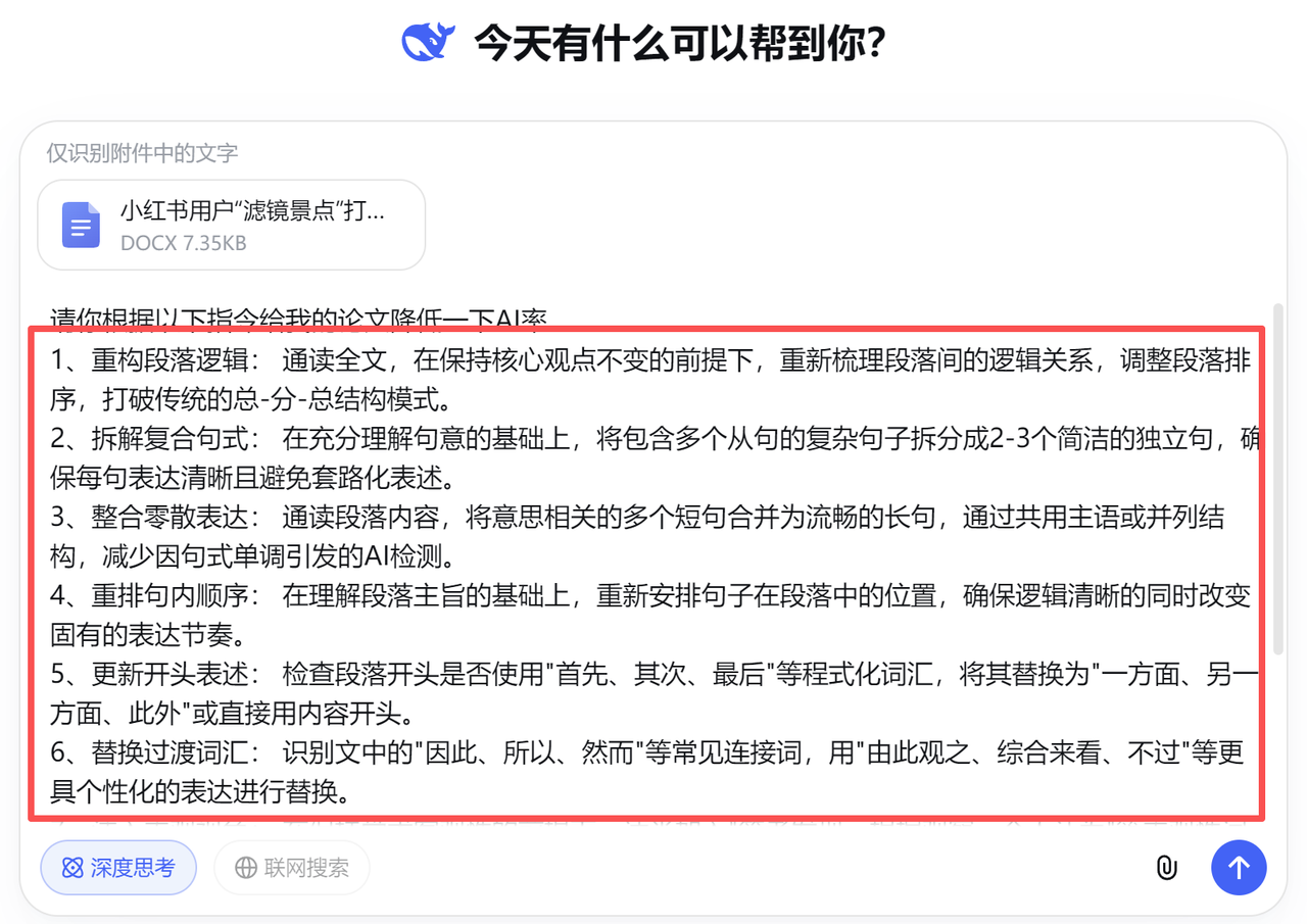 绝不可能一下子把AI率降下来。同类工具如Claude、Chatgpt、豆包也都差不多。