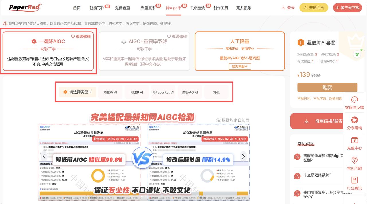这个平台一键降AIGC的价格是6元每千字,用的时候心有点痛。