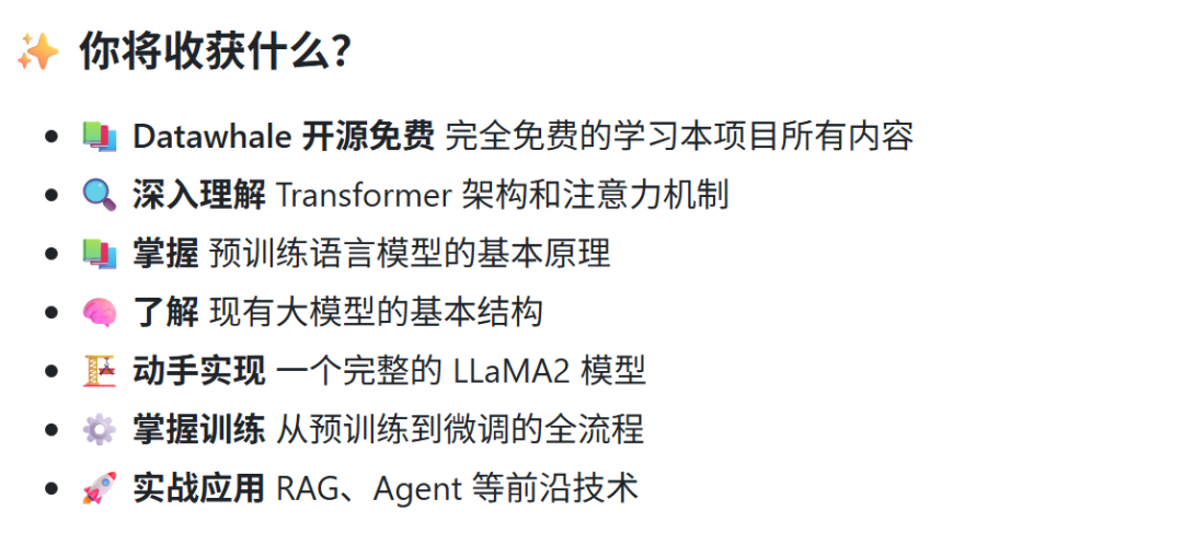 如果你也想真正学会大模型的底层原理,令到自己在接下来的 AI agent 有更大的优势,那么,现在就打开你的浏览器,去给这个项目点上一个 Star 吧!