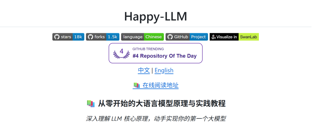 它由国内知名的 AI 学习开源社区 DataWhale 打造,项目名字也很特别,就叫 Happy-LLM