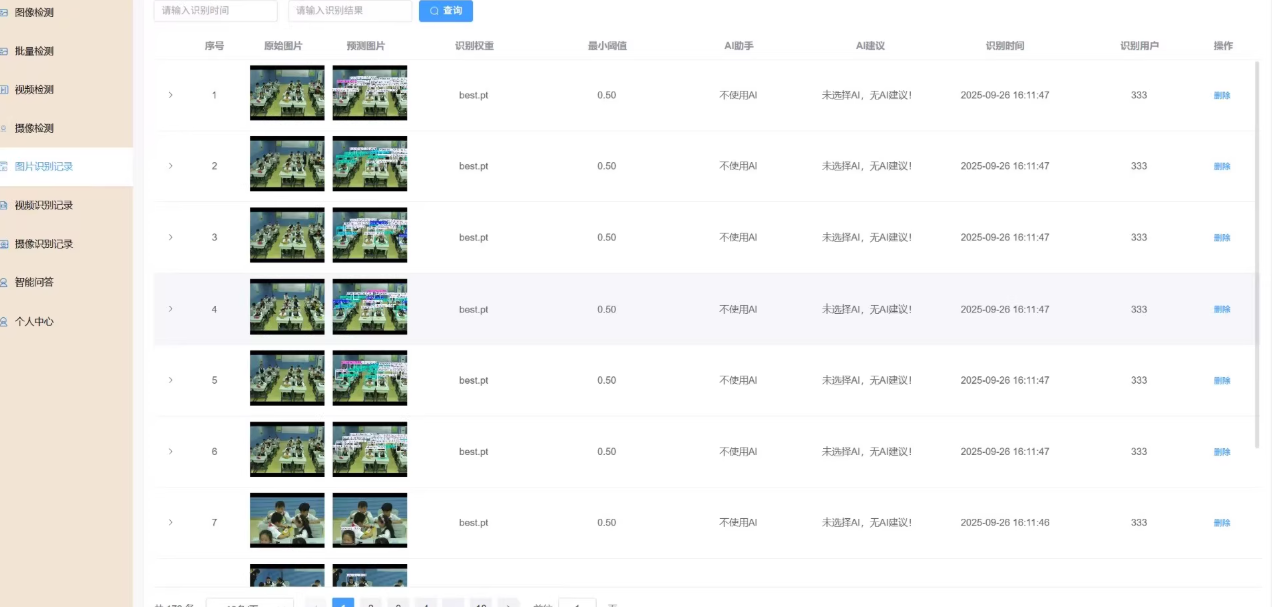 检测记录管理(前端展示历史记录,支持删除/查看)