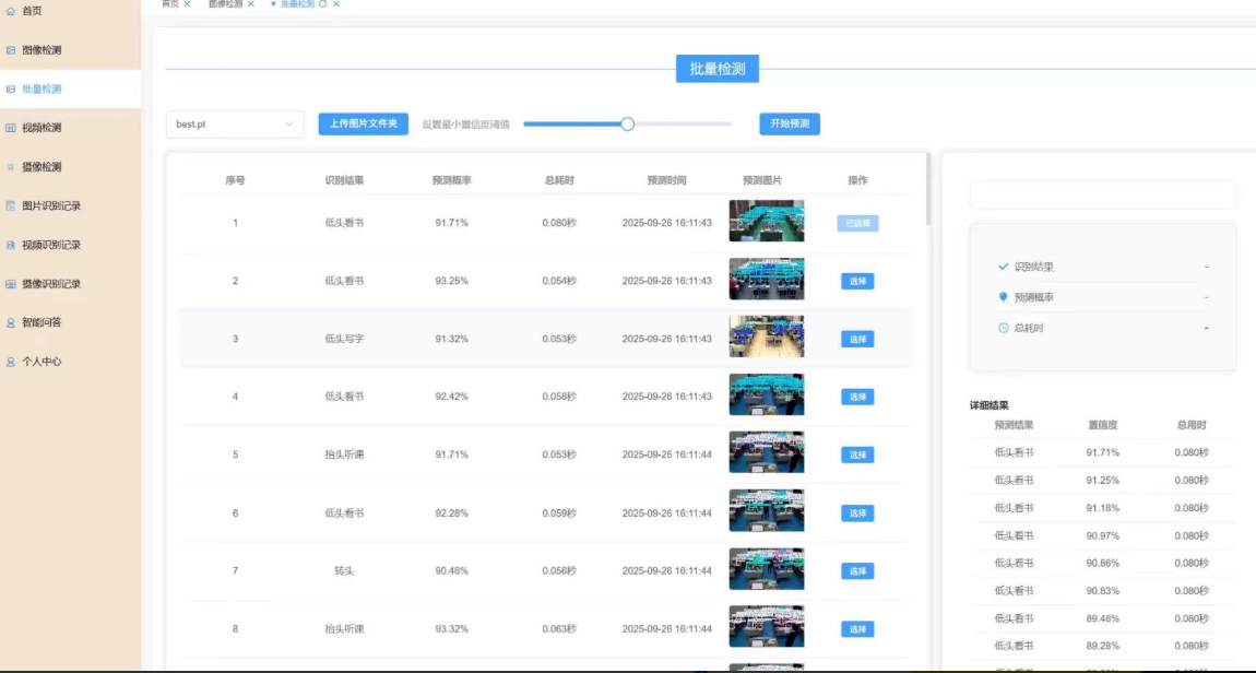 基于 改进YOLO(PyTorch)与大模型(DeepSeek / Qwen)结合的 课堂行为检测与智能分析系统,支持单图/批量/视频/实时摄像头输入,含前后端完整源码与环境配置,可开箱即用并支持定制。