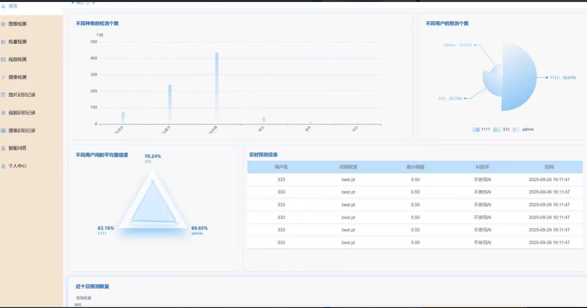 实时反馈:前端实时展示检测结果并能导出 PDF 报告。