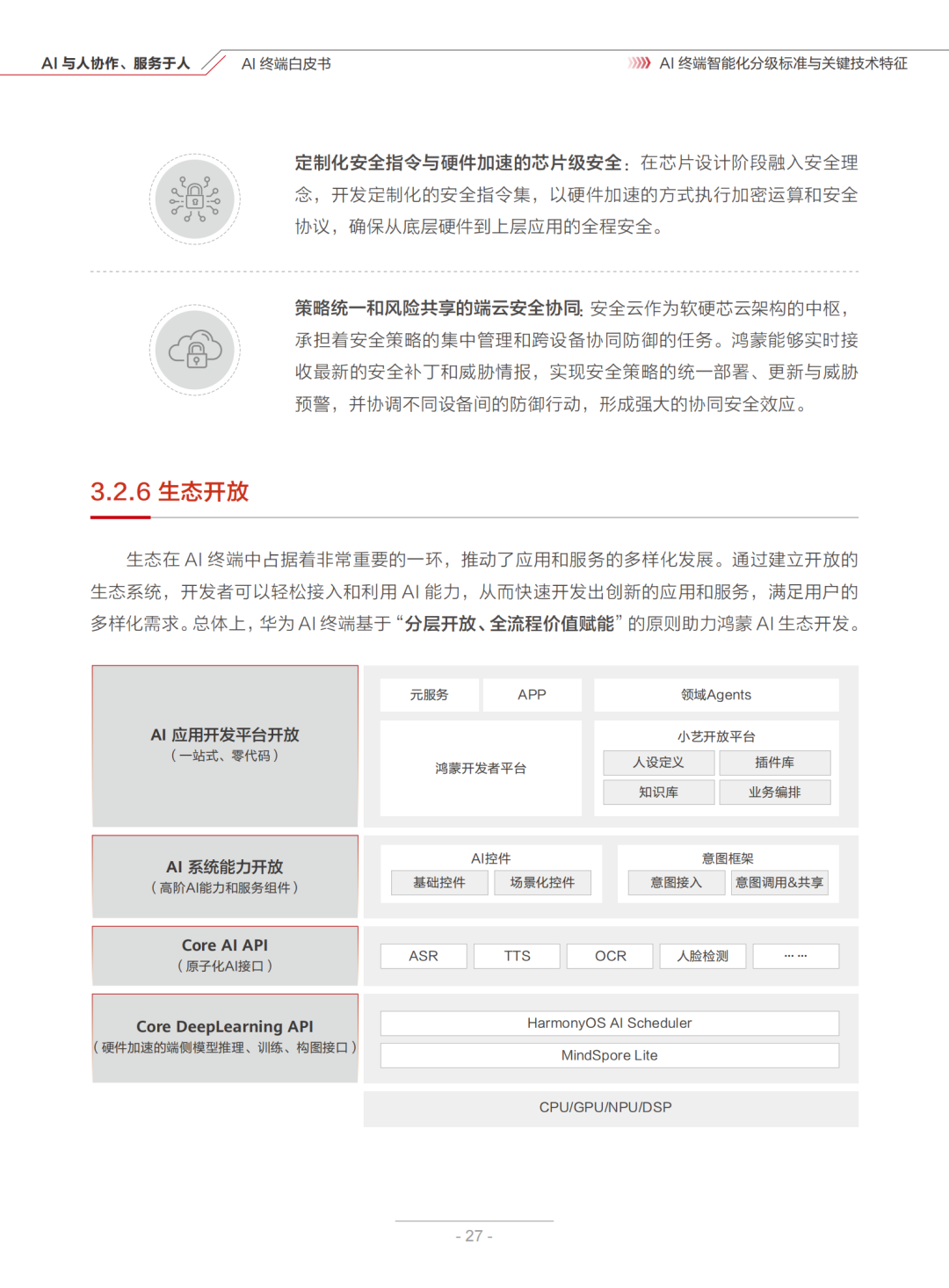 安全可信:打造 “软硬芯云一体化安全架构”,从软件、硬件、芯片、端云协同四层实现数据和系统安全防护。