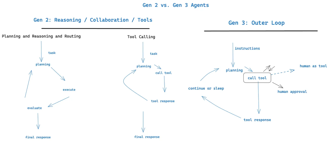 - 外环代理:支持代理被事件、定时任务等非人类触发,关键节点可寻求人类协助