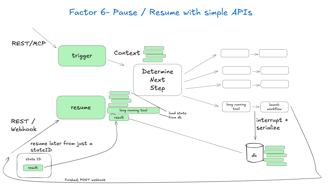 本原则鼓励将 LLM 代理设计为无状态处理器,每次只依赖输入和外部状态生成输出,无需在交互间维护内部长期记忆。所有持久状态应交由外部存储(如数据库、消息队列)管理。这种模式提升了可扩展性、弹性和水平扩展能力,任何代理实例都能处理任意请求,单实例故障也不会丢失数据。