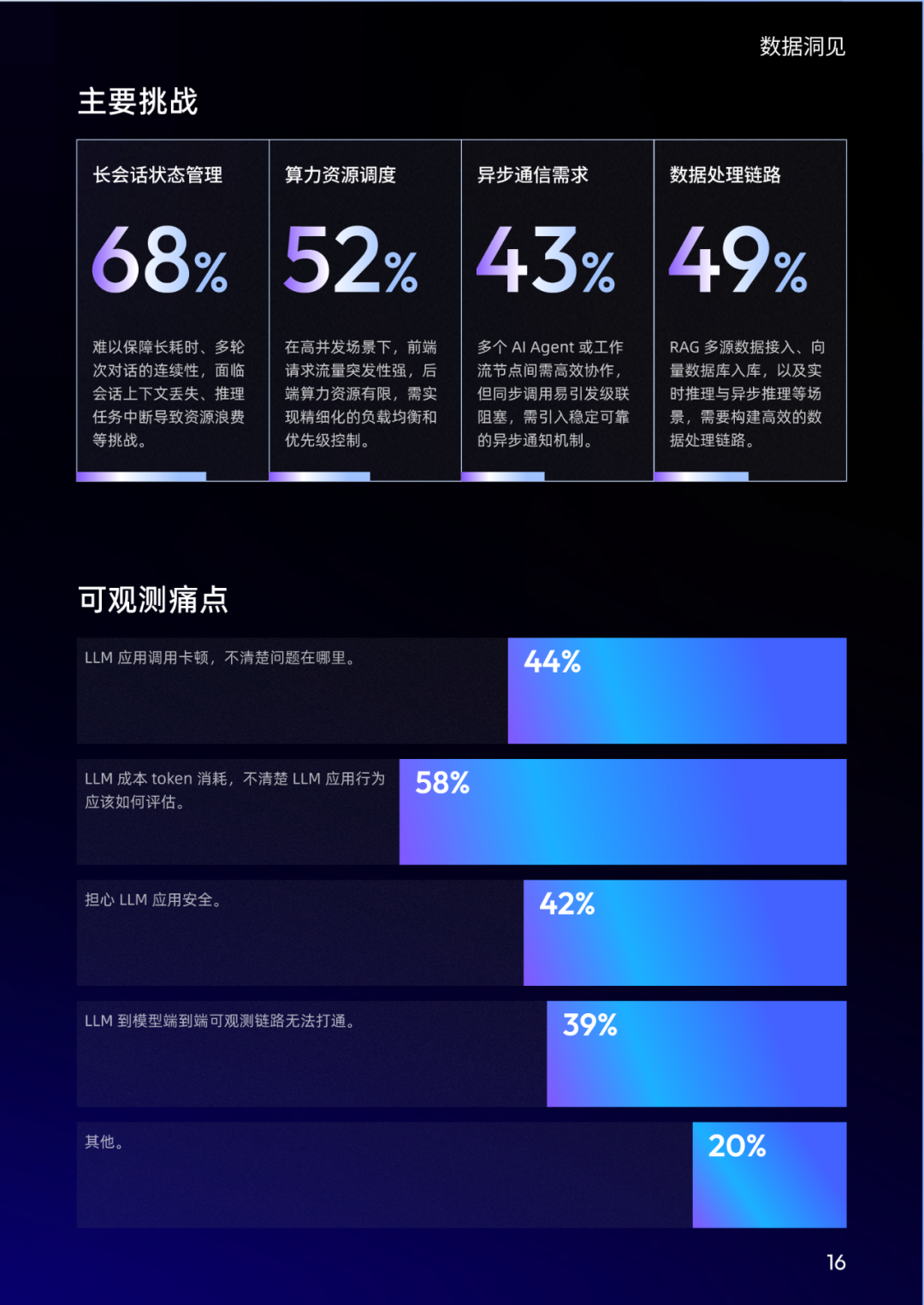 然而,AI 应用开发过程中仍面临诸多挑战,例如开发阶段强依赖模型黑盒特性,导致结果可控性不足、幻觉问题频发,从原型验证(PoC)到生产部署往往需要数月调优,核心痛点集中在调试效率与业务适配;上线后则面临推理延迟、稳定性波动、问题排查困难、安全风险凸显、输出不可靠及成本过高等问题,折射出企业级 AI 应用在稳定性、性能、安全与成本控制上的系统性挑战。