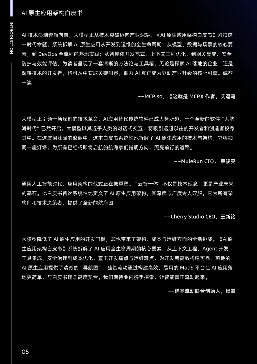若白皮书能对个人学习和企业落地 AI 原生应用架构起到一点点的促进作用,将是我们莫大的荣幸。