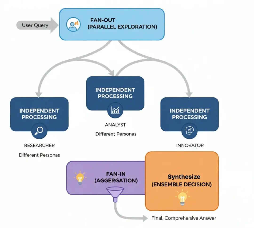 在大规模AI系统中,这个模式完美适合任何阶段,那里生成输出的质量很关键。想想像生成复杂代码、写详细技术报告这样的任务,任何地方一个简单的初稿答案都不够好,可能导致现实问题。
