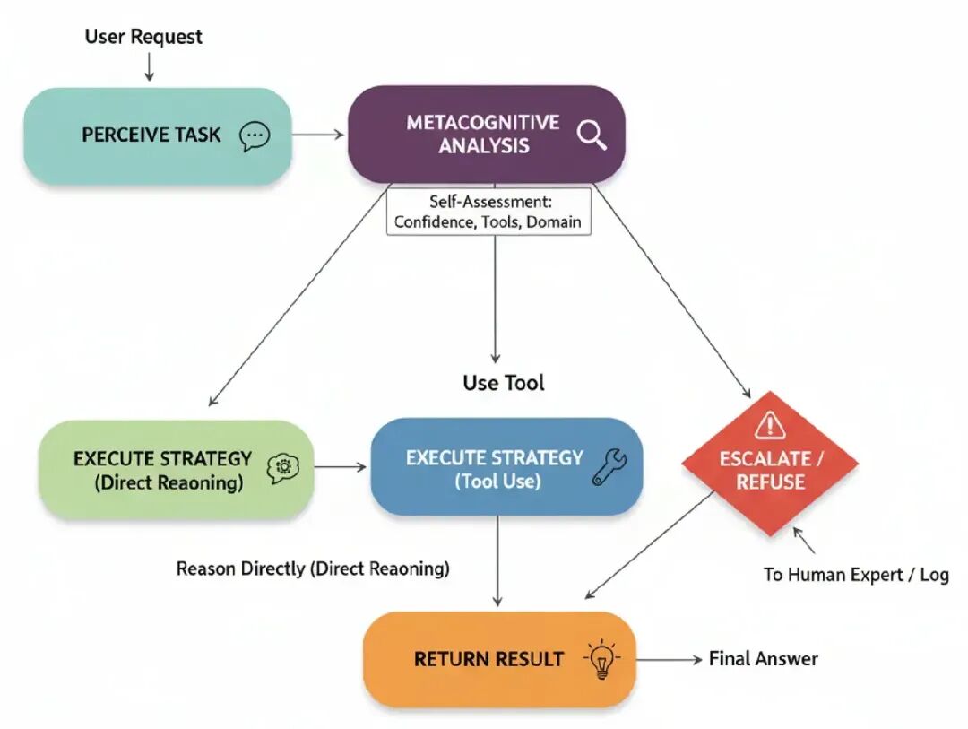 - Strategy Selection: 基于这个自我分析,它选择一个策略: