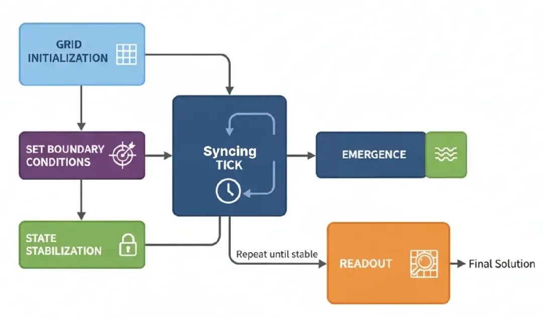 想想物流规划、疾病建模,或模拟城市增长。它把问题空间本身转成一个“计算织物”,通过信息波状传播解决问题的。