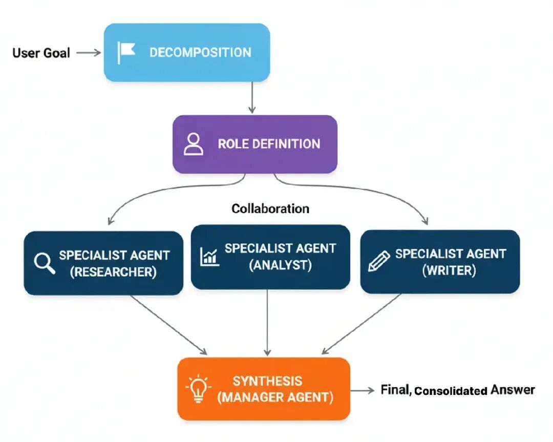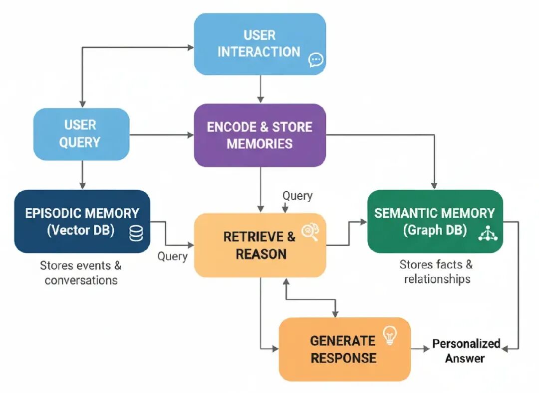 - Contextual Recall: 用户请求先击中一个Reflexive Metacognitive代理验证它在范围内,不是高风险法律或敏感查询。一个Meta-Controller然后路由任务到“Competitive Analysis”工作流程。同时,Episodic + Semantic Memory被查询表面这个竞争者的先前分析,提供立即、个性化的上下文。