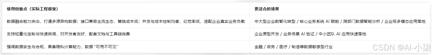 - 数据敏感型行业:金融、政务、医疗、制造等行业,对数据安全与合规有严格要求,需要大模型具备隐私计算能力,实现数据的安全利用;