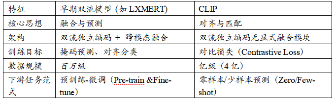 表2:早期双流模型与CLIP的对比