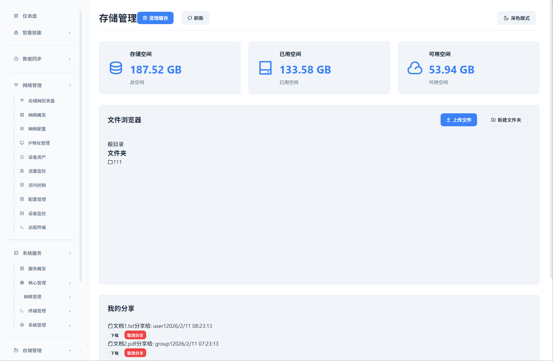 ooderNexus 的OpenWrt 集成是目前最完整的功能模块。系统状态监控(CPU、内存、温度、运行时间)网络配置管理(接口、DHCP、防火墙)IP 地址管理(静态/动态分配)远程命令执行配置文件管理ooderNexus 实现了完整的MD5 哈希去重:相同文件只存储一份版本控制:文件修改自动创建新版本原子操作:临时文件+重命名机制,防止数据损坏内存缓存:热点文件缓存加速局域网设备自动发现设备