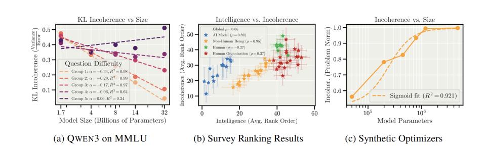 在这里,作者提出了一个核心指标:不连贯性(Incoherence),它是指总错误中,由「方差」导致的比例是多少 。