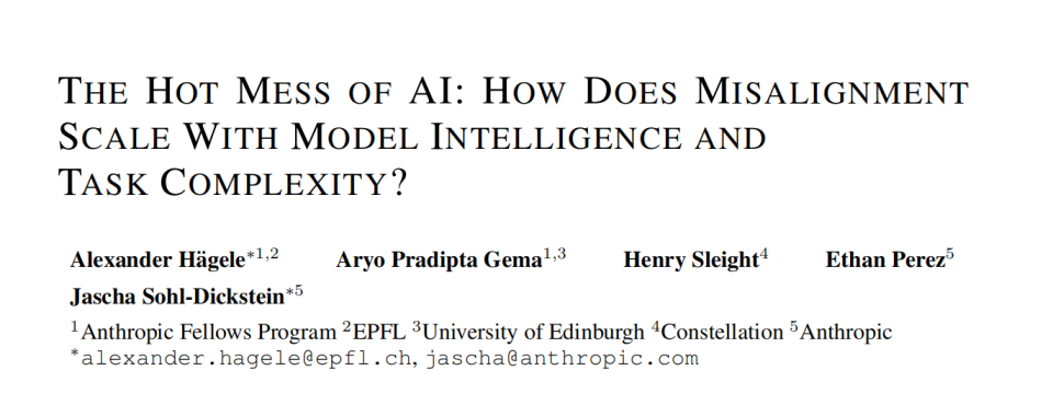 Anthropic 的研究员们在1月末发布了一篇重磅论文《The Hot Mess of AI 》(AI 的一团乱麻),试图解释第二个问题的因由,结果他们发现,这一试,给自回归模型(Transformer为基础的都是)清楚的找到了阿喀琉斯之踵。