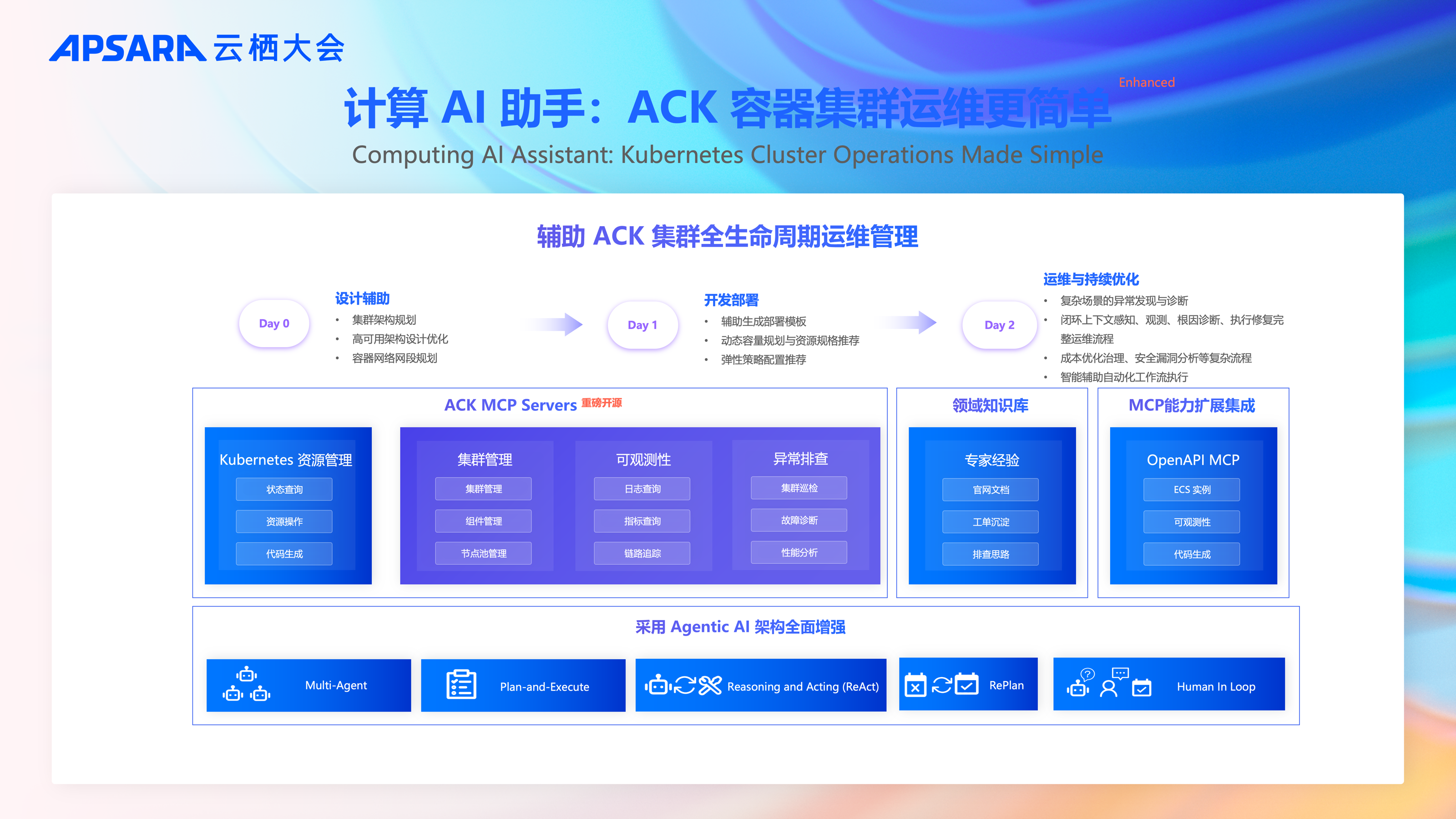 同时支持复杂场景下的全自动 AIOps 流程,未来还将实现应用创建与资源管理的自动化,真正让容器服务更智能、高效、自愈。