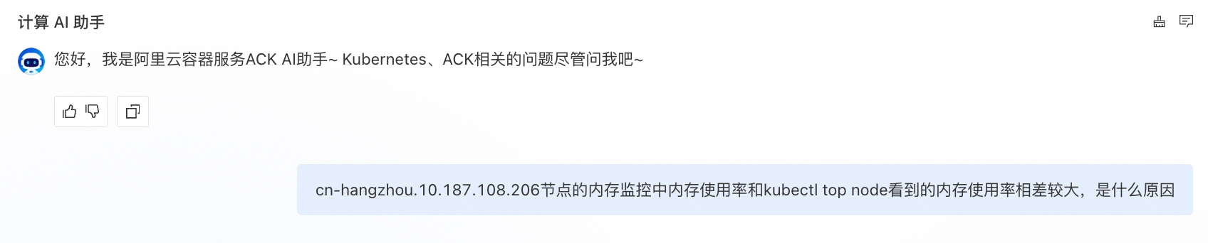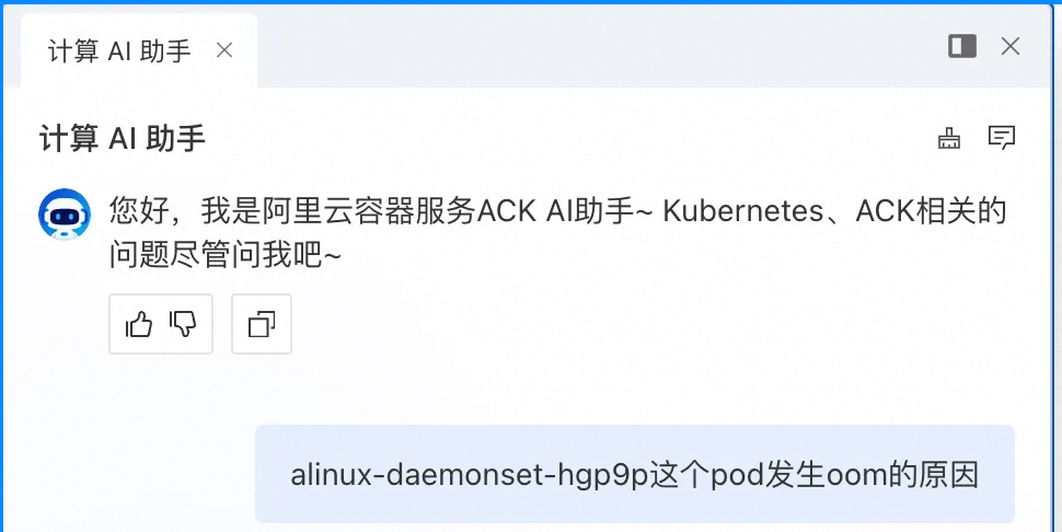 ACK AI 助手是构建在阿里云容器服务 ACK 之上的智能运维助手。