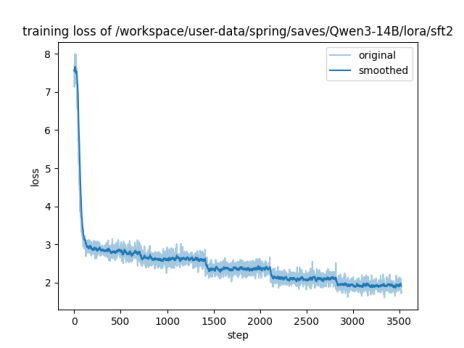 将预处理后的 Alpaca 格式数据集保存为 JSON 文件后,即可直接作为训练样本导入 LlamaFactory。训练过程中,模型会以 “instruction + input” 作为输入序列,以 “output” 作为目标序列进行监督学习,最终学会根据上联和任务指令,生成符合格律要求的下联。