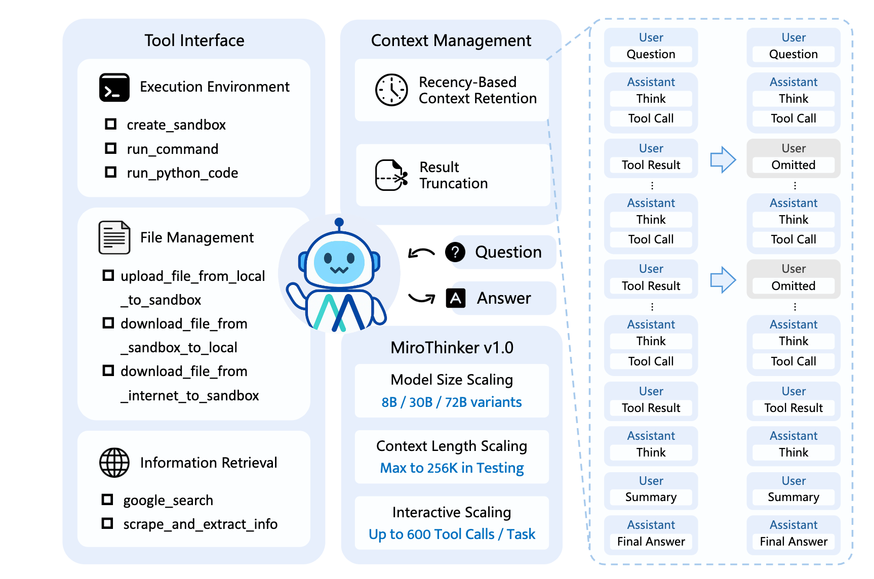 mirothinker1.0 :ReAct paradigm in single agent