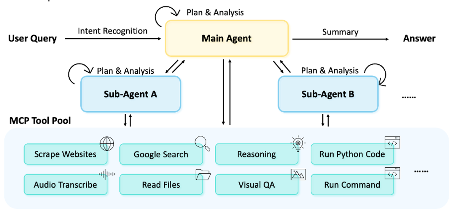 MoriFlow提出MiroThinker v1.0开源研究代理框架,通过增强交互能力而非单纯扩大模型规模来提升性能。该框架支持256K上下文窗口和600次工具调用,采用强化学习优化决策,结合近时上下文管理策略。研究发现交互扩展能有效纠正推理错误,但存在工具冗余使用、思维链过长及多语言混合等局限。实验表明交互深度是提升研究代理能力的第三维度,为智能体发展提供了新方向。相关工作包括代理基础模型和深度